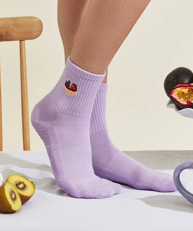 Quarter Crew Non Slip Grip Socks - Pumpkin