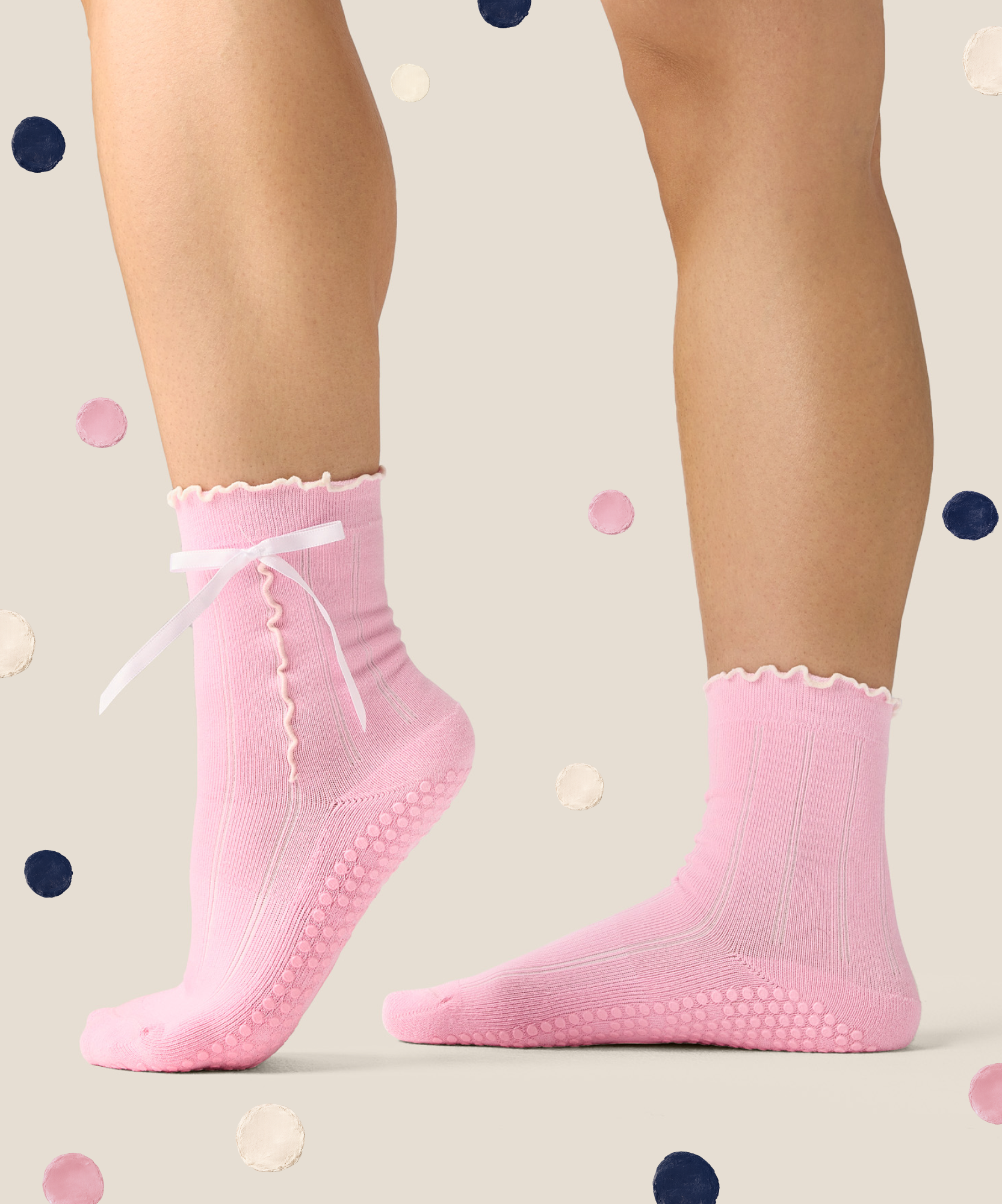 Low Rise Grip Socks - Polka Dot Pink